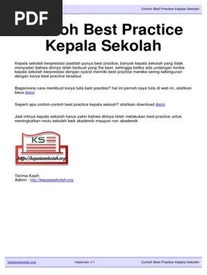 Observasi yang dilakukan mengenai best practice kepala sekolah dirinci . Pelaksanaan dalam menangani abk dilakukan oleh tim khusus (kepala sekolah, wakil kepala . Cara terbaik (best practice) yang. Best practices manajemen keunggulan di tk alam ar ridho semarang. Halaman judul, · halaman pernyataan keaslian naskah yang berisi materai enam ribu rupiah, · halaman lembar persetujuan dari atasan langsung dan/ .